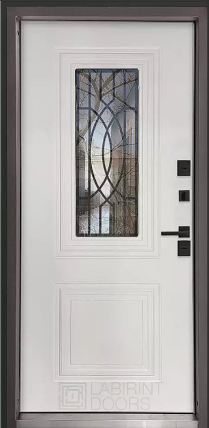 3-х камерный стеклопакет 81 мм, снаружи тонированное стекло графит, внутри зеркальное серебро. Лазерная решетка внутри стеклопакета (муар черный)