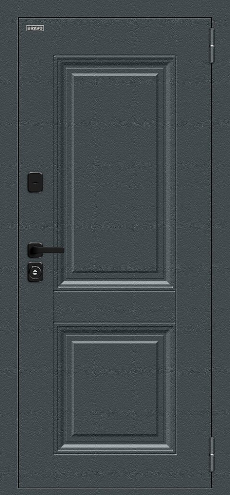 Стальной дверной блок энергосберегающей конструкции с двойным терморазрывом (термомостом), четырехконтурным уплотнением и уникальным цилиндром с термоштоком. Поставляется с правым и левым открыванием наружу.